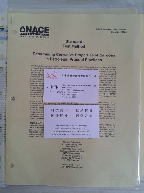所属分类:首页 >> 国外进口出版物 >> 进口版NACE标准 >> NACE TM 0172-2001 DETERMINING CORROSIVE PROPERTIES OF CARGOES IN PETROLEUM PRODUCT PIPELINES