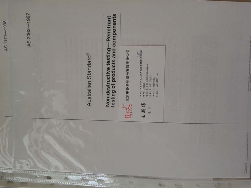 所属分类:首页 >> 国外进口出版物 >> AS 进口标准 >> AS 2062-1997 NON-DESTRUCTIVE TESTING - PENETRANT TESTING OF PRODUCTS AND COMPONENTS