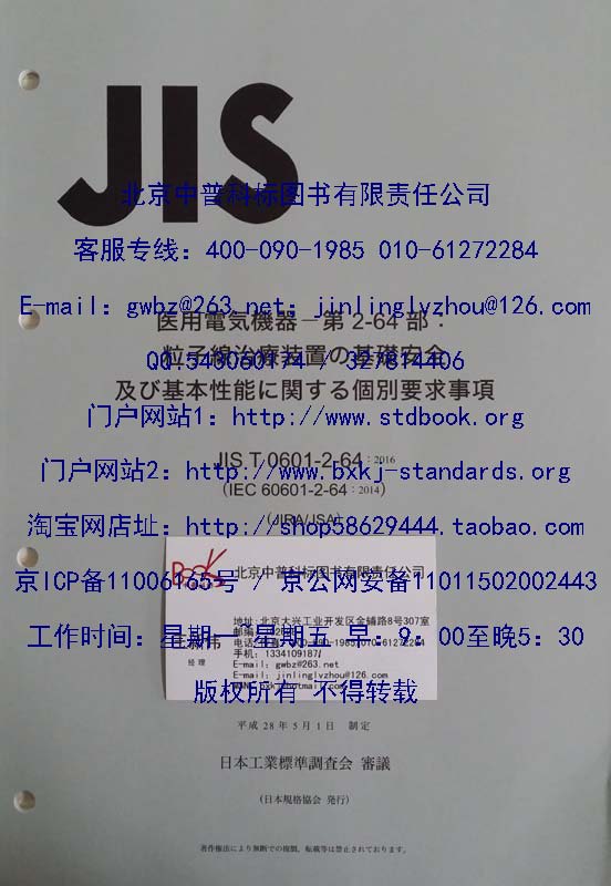 JIS T 0601-2-64 2016 Medical electrical equipment - Part 2-64: Particular requirements for the basic safety and essential performance of light ion beam medical electrical equipment