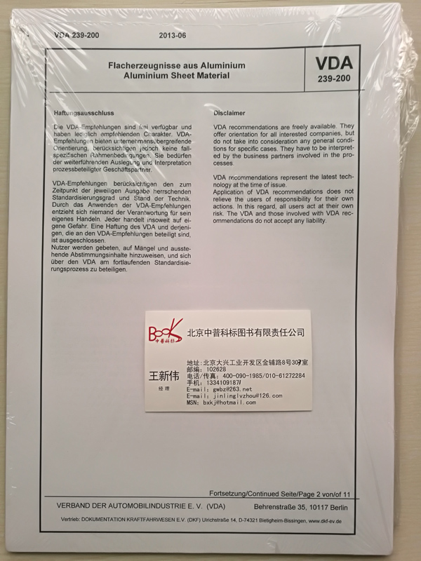 德国进口原版 VDA 239-200 (E) 2013 Edition, June 2013
