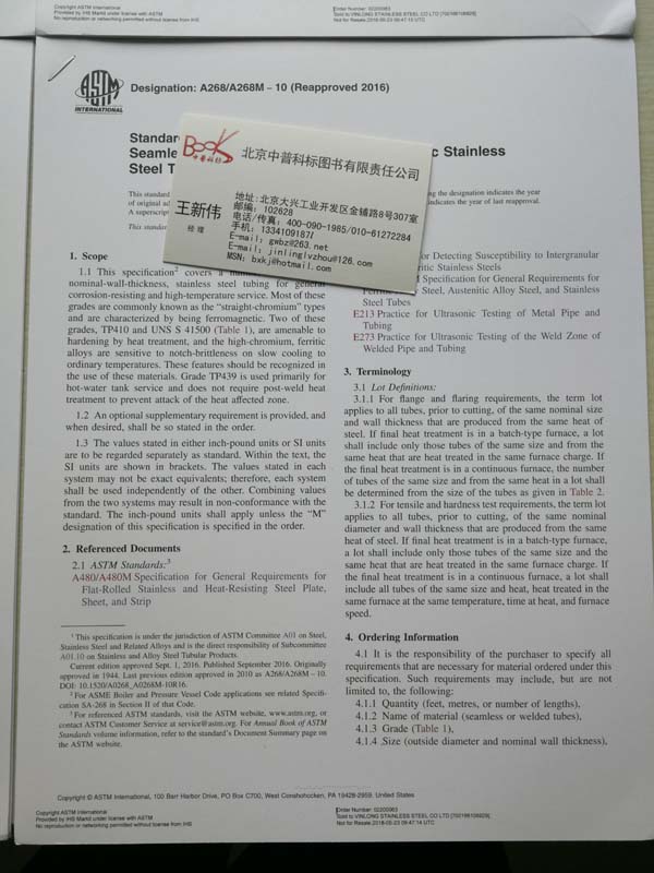 美国进口原版 ASTM A268/A268M-2010R2016