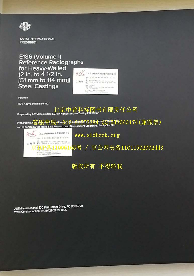 ASTM E186厚壁[2~41/2英寸(51~114mm)]钢铸件的参考射线底片 共三卷,信息如下:
